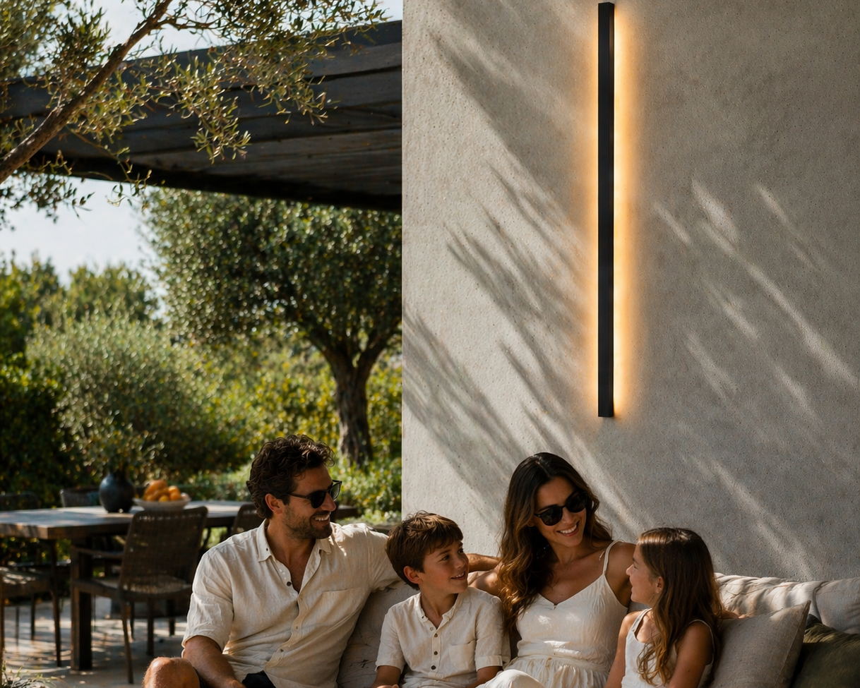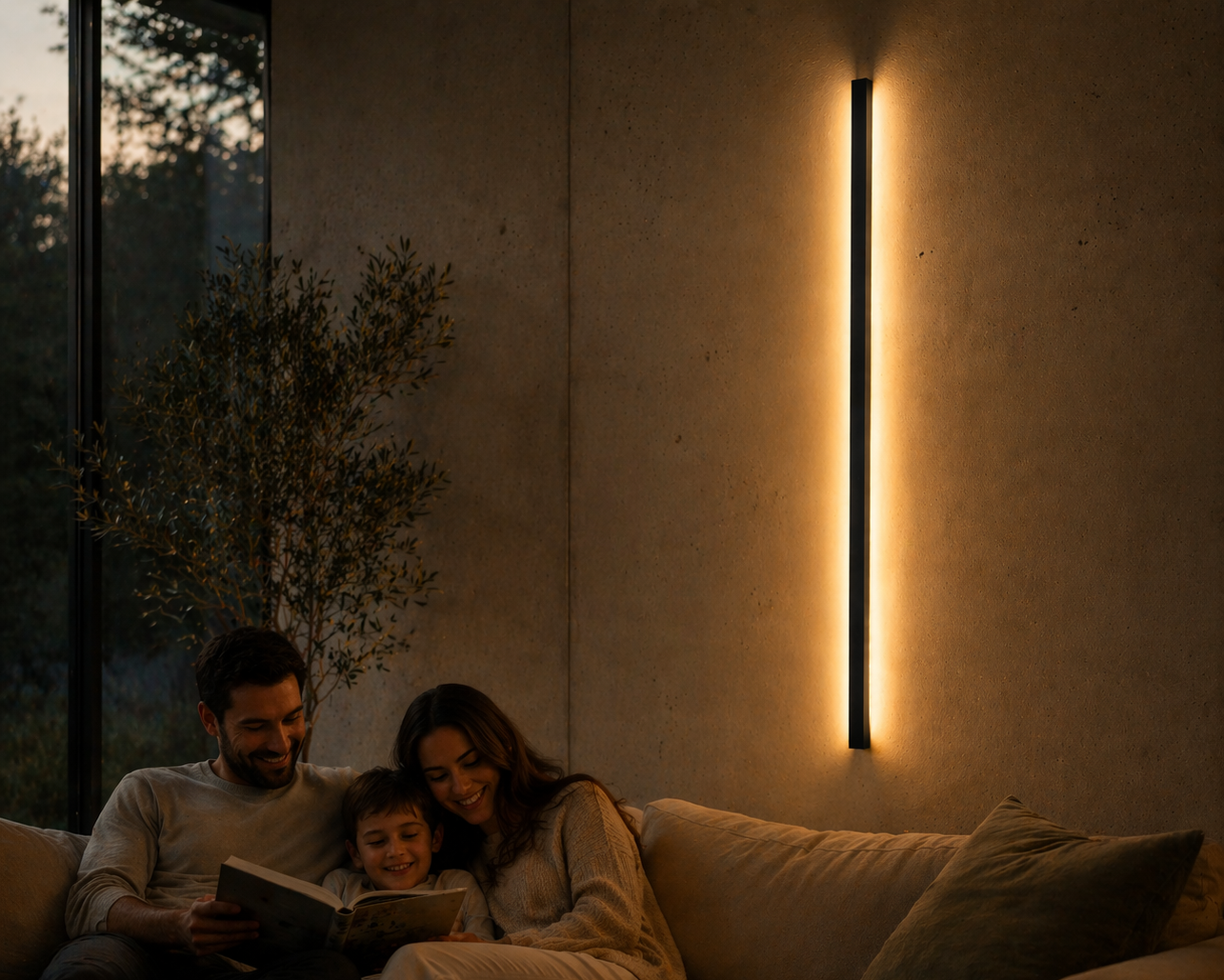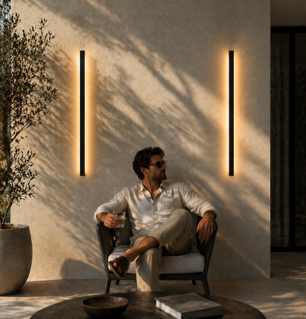 A sleek statement piece that enhances your space whether it’s daylit or glowing at night.