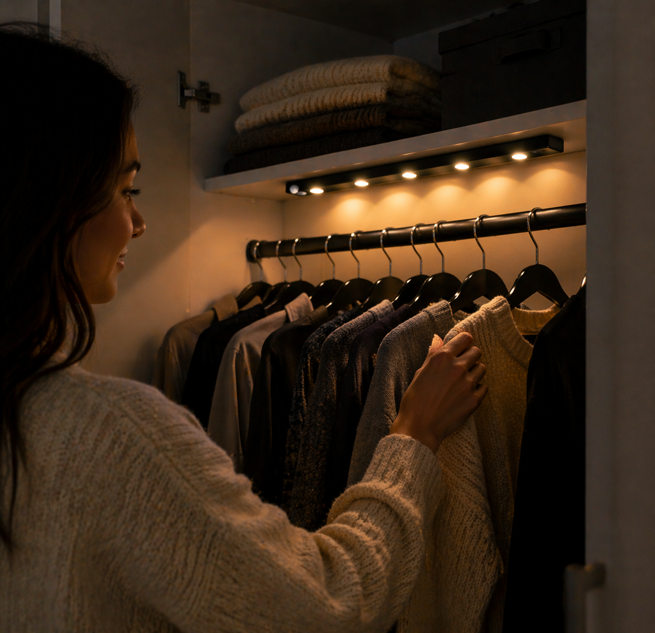 Bring clarity and style to your closet with lighting that turns on the moment you need it. No more searching in the dark just clean, even illumination across your entire wardrobe. Designed to make getting ready feel effortless and refined.