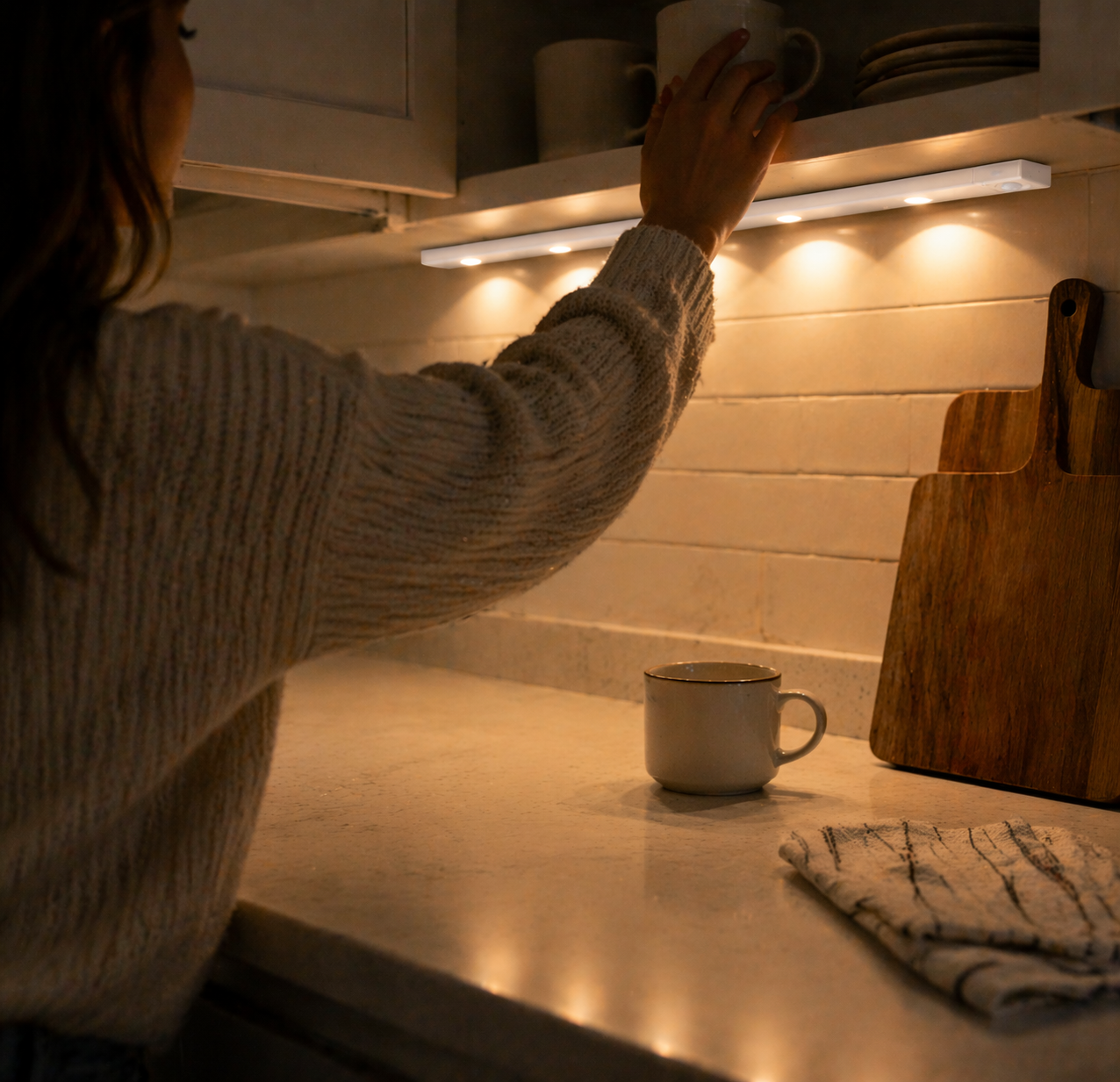 Never struggle to see in dark cabinets again. The motion activated glow turns on instantly as you reach, making everyday moments smoother and more convenient. Clean, modern lighting that upgrades your kitchen without effort.